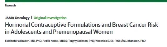 Hadizadeh F, Koteci A, Karlsson T,et al. Hormonal contraceptive formulations and breast cancer risk in adolescents and premenopausal women[J]. JAMA Oncology, 2025. DOI:10.1001/jamaoncol.2025.4480.