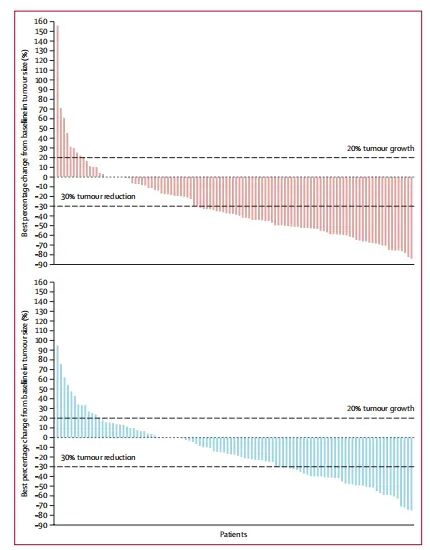 图1:意向治疗人群中BICR评估的ORR瀑布图